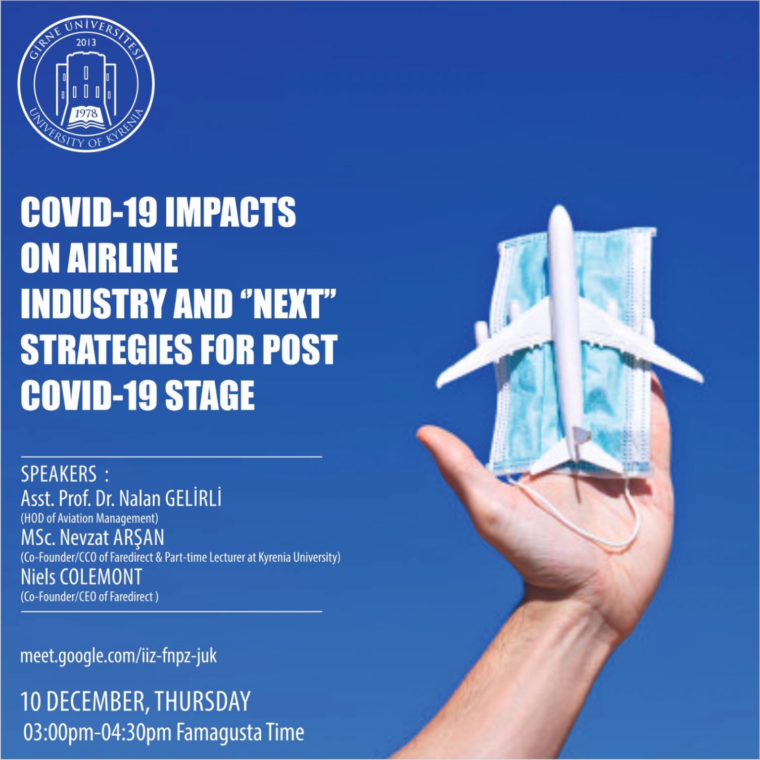 Girne Üniversitesi Havacılık ve Uzay Bilimleri Fakültesi Havacılık Yönetimi Bölümü tarafından 10 Aralık 2020 tarihinde “Covid 19’un Havayolu Endüstrisine Etkileri ve Covid-19 Sonrası dönemde İzlenecek Stratejiler” Paneli düzenlendi.